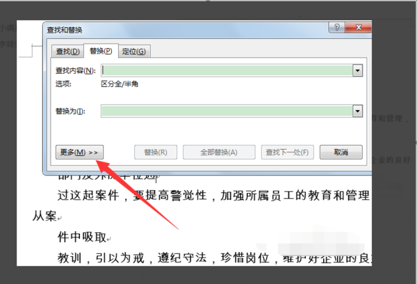 3、我们只要把这个东西替换掉即可。输入Ctrl+H,然后点击更多。