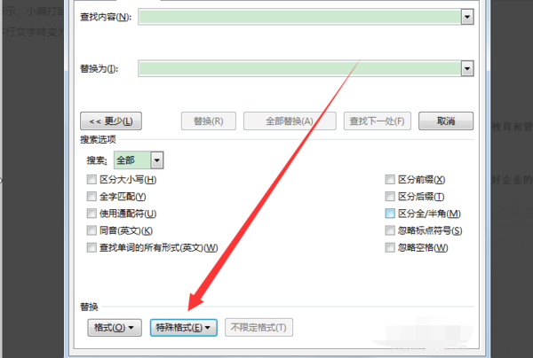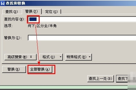 7、被替换为的内容为空,点击全部替换。