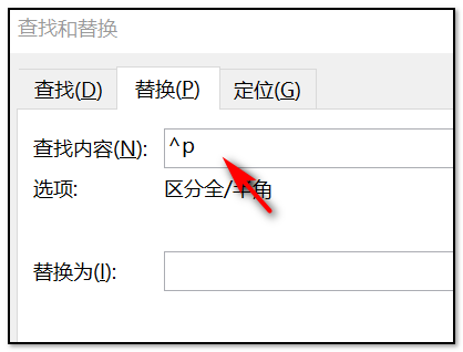 查找内容为^p
