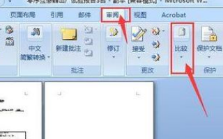 4、我们在打开的初始WORD文档时,在菜单栏选择审阅,在相应的工具栏中找到比较。