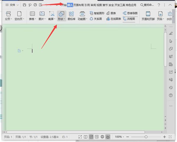 2、接下来在上方工具栏中选择“插入”-“形状”,选择自己需要的形状插入。