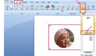 2、切换到“插入”,点击“文本框”下拉列表,选择“简单文本框”。