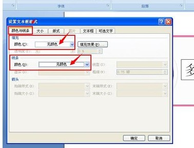 5、切换到颜色与线条标签,“填充-颜色”选择“无颜色”,“线条-颜色”选择“无颜色”。