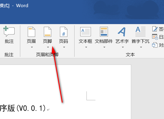 4、在随后打开的菜单中点击“页脚”按钮。