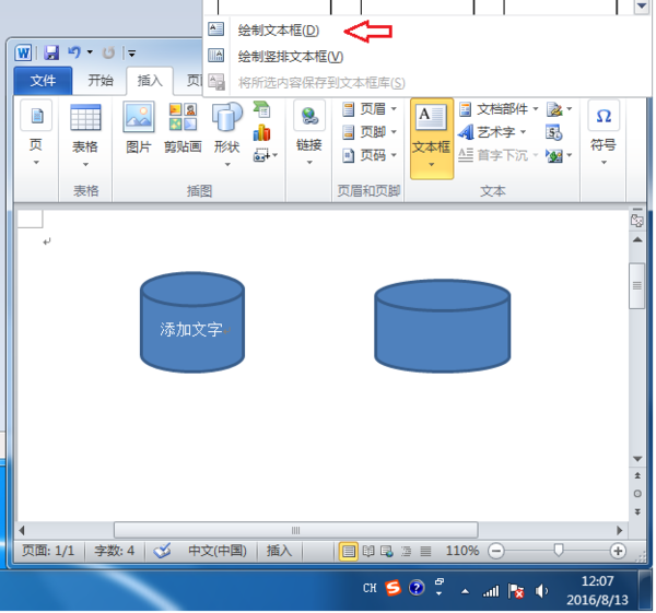 方法二:通过插入文本框来插入文字