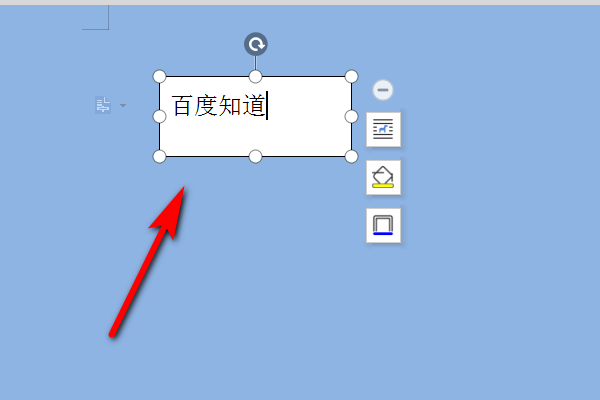 3.接着便可以在文本框中输入文字,如果刚刚拖曳的矩形太小,你可以利用该矩形四周的8个小框框调整大小。