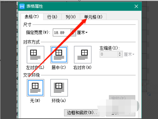 3、进入表格属性设置界面,在导航栏中找到单元格设置。