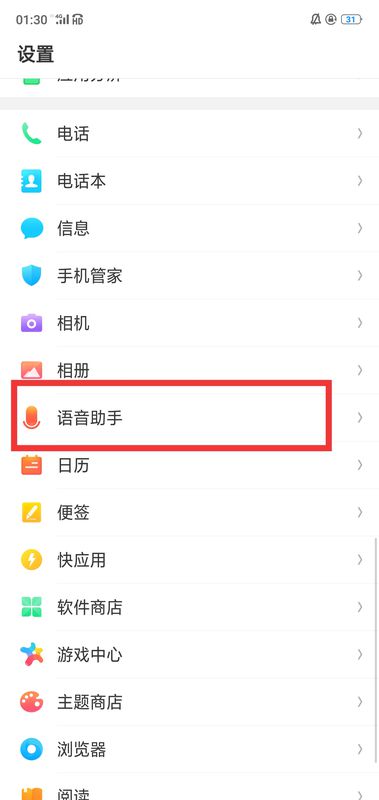 2、在设置里下拉找到“语音助手”,点击打开。