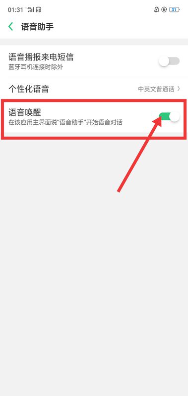 3、看到“语音唤醒”功能,把开关键打开。