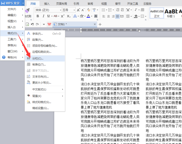 2、然后我们点击界面上方快捷操作栏里的分栏选项。
