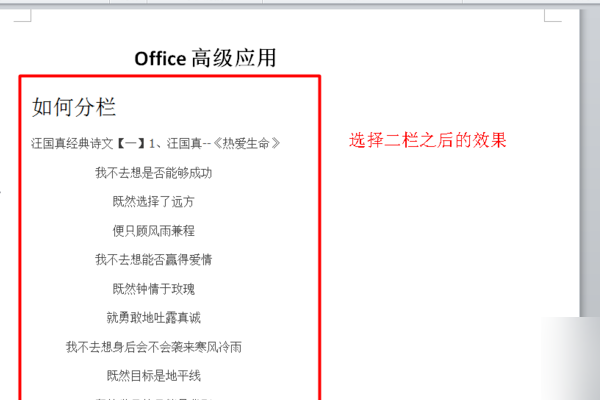 2、左边为第一栏,右边为第二栏,先左后右,写完了第一栏,会自动转到第二栏,没写满就一直按回车键直到光标转到第二栏,开始编辑,注意:只要不在第一栏增加行数,就不会影响到第二栏的编辑。若增加一行,第二栏里原本的内容相应的向下移一行。