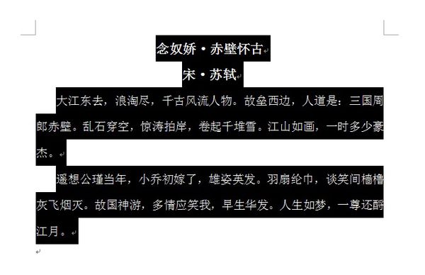 将鼠标移动到一行左格线和文本之间的空白处,指针变为向右箭头后单击可选定整行内容。