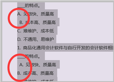 5、点击替换后即可将选项前面的空格取消,将选项对齐显示。