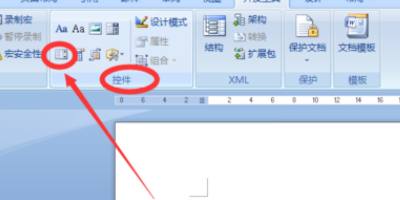 2、接下来在开发工具选项下有一个控件选项卡,如下图所示,在控件选项卡下找到一个下拉列表的控件标志。