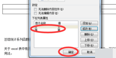 7、所有的下拉菜单内容都输入完成之后,返回到内容控件属性设置对话框中点击右下角的确定按钮就设置完成了,返回到word文档内就可以看到表格的下拉菜单设置完成了。