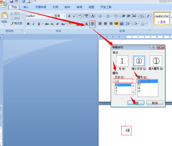 如图:开始——圈字——文字——符号——确定,即可