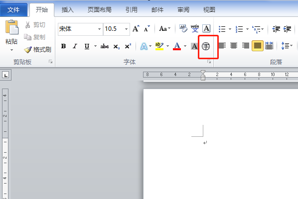 2、单击开始选项卡上的带圈字符按钮,如图所示;
