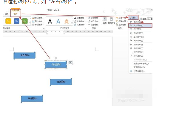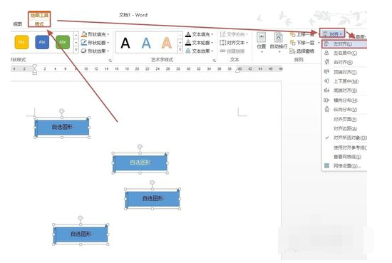 2.选中图形,在“绘图工具-格式”选项卡“排列”组,单击“对齐”,然后从列表中选择合适的对齐方式,如“左右对齐”。