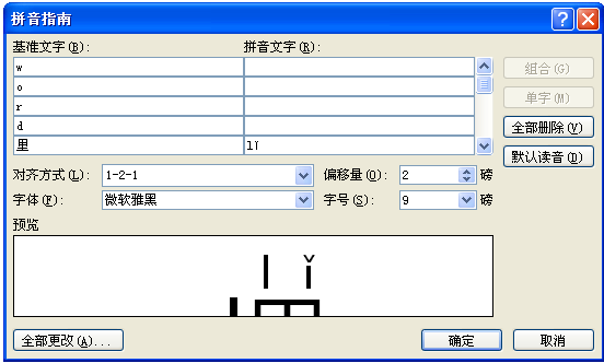 3、弹出拼音指南对话框,在偏移量处可以调整文字与拼音之间的间距,如图所示。