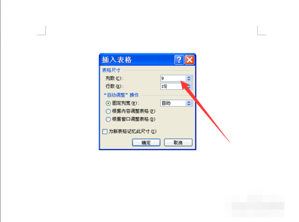 2、在弹出的插入表格对话框中设置行数和列数,点击确定按钮。