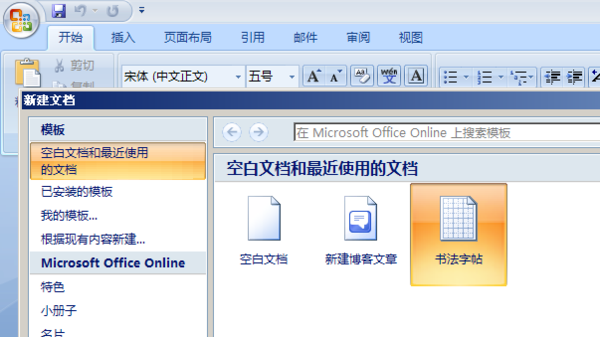 2、在弹出的“新建文档”对话框中,选择“书法字帖”,单击“创建”,如图: