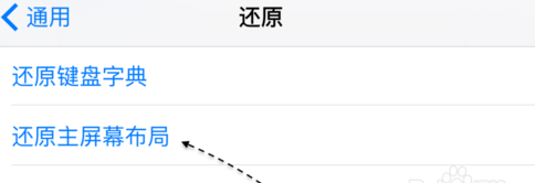 如果能用这个方法打开设置的话,此时我们可在【设置-通用-还原】列表中,点击“还原主屏幕布局”选项,如图所示