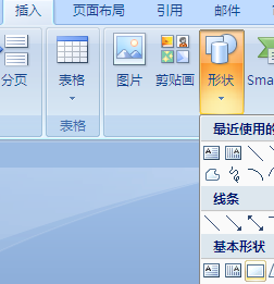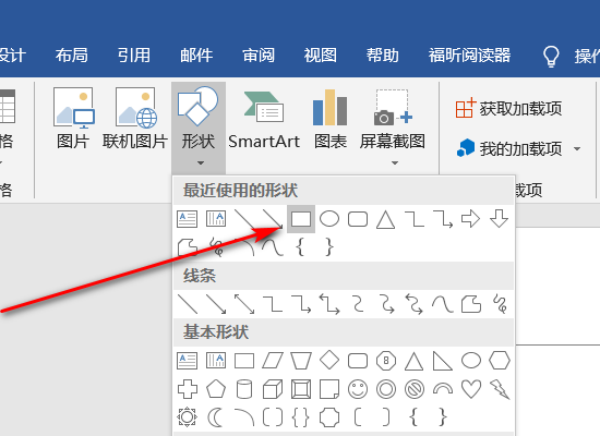 4、在随后弹出的界面中点击“形状”按钮,在随后打开的菜单中点击“长方形”,随后绘制一个小方框。