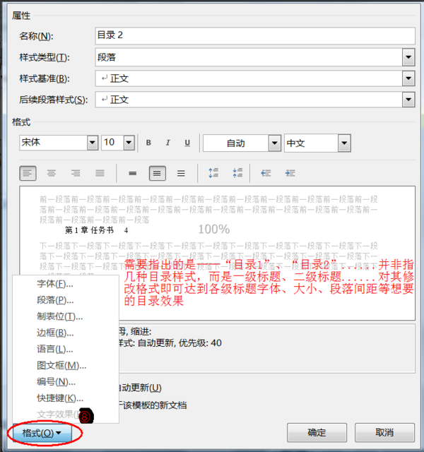 word里面设置目录的时候,怎么让目录的字体和正文的字体不一样?