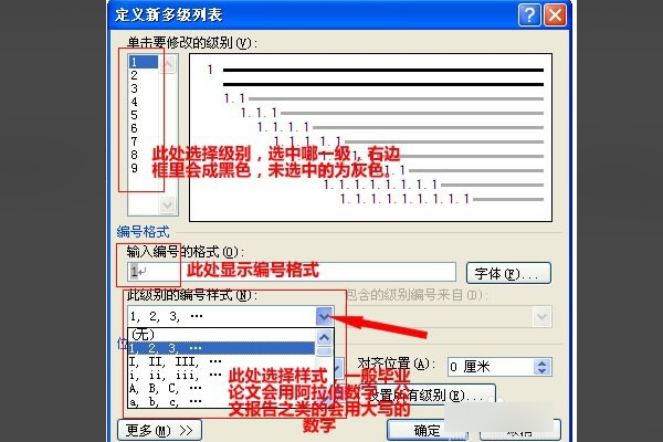 在列表中选择一种符合实际需要的多级列表编号格式。