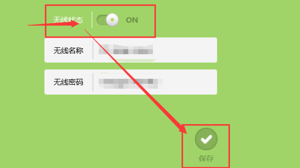 4、若想使用手机连接无线wifi,再点击下方的无线设置,将无线状态点击成“on”再输入无线名称和无线密码(这个没有要求,名称和密码都自己输入)。完成后打开手机WLAN找到这个无线名称输入密码就可以了。