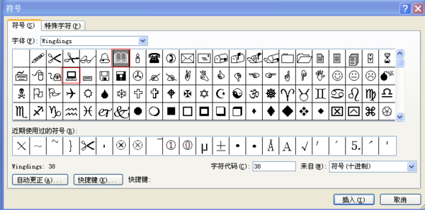 怎么在Word中打出时钟,电脑和书的特殊符号