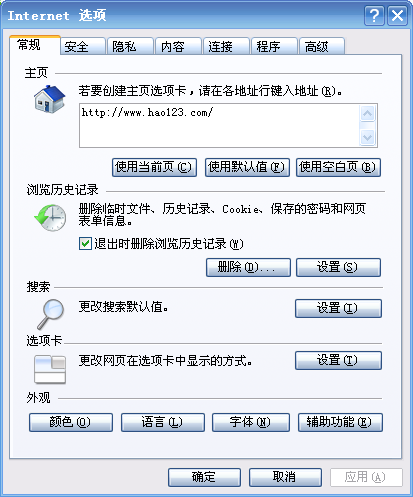 3.弹出“Internet选项”对话框,在“浏览历史记录”选项区中单击“删除”按钮,