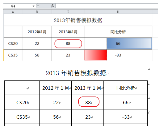 4.当自更改EXCEL表格中的数据的时候,WORD文本中的数据已经自动变更,效果如下图: