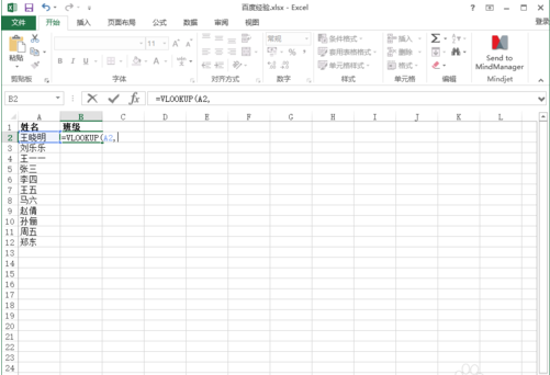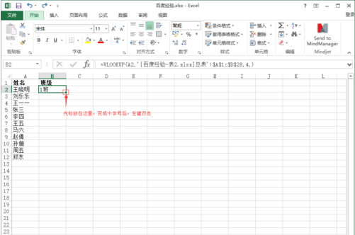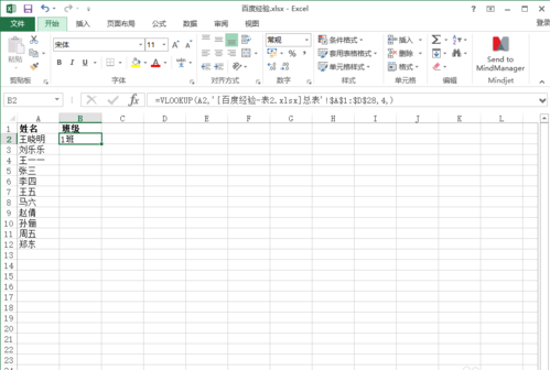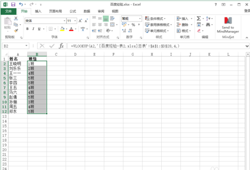 1、我们打开一个excel表,需要在另一个表中匹配出相应同学的班级信息。