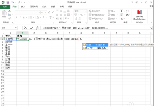 7、因为我们要返回的是第二张表中第四列的班级信息,所以在公式中再输入“4,”(逗号是英文的)。