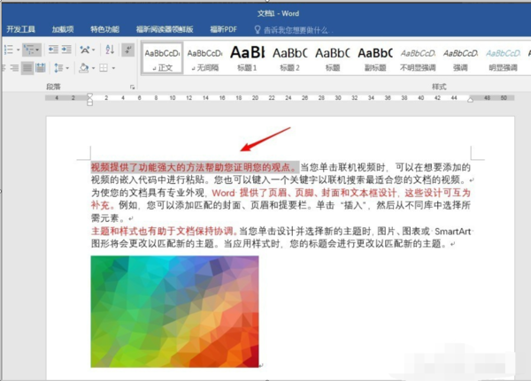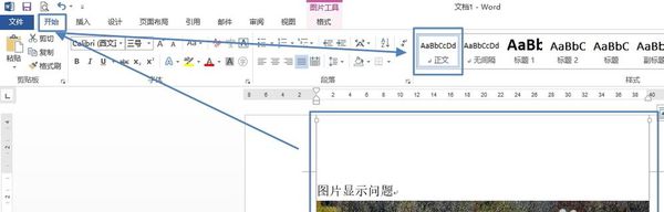 1、单击选中图片,然后在“开始”选项卡“样式”组,单击“正文”。