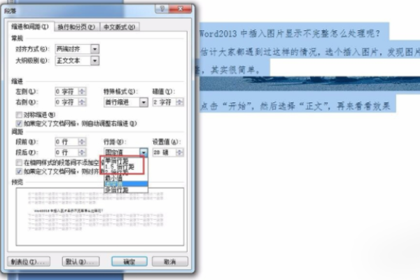 word中粘贴的图片显示不完整是因为行间距设置不正确,具体操作步骤如下: