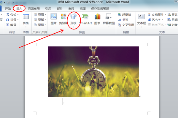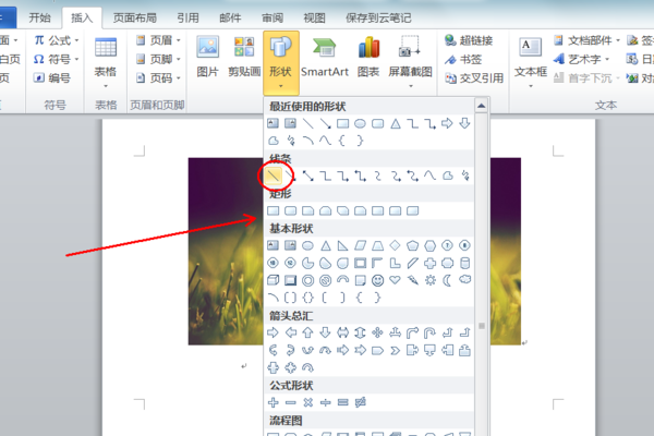 1、打开需要操作的WORD文档,点击插入选项卡中的“形状”。