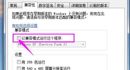 3.在兼容模式下的“以兼容模式运行此程序”打勾。
