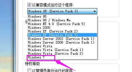 运行这个程序”上打钩,并可以选择以Windows 95/98/ME/NT 4.0/2000/XP(Service Pack 2)/Server 2003(Service Pack 1)/7/8/10的模式来运行,这样能避免诸如老游戏等程序在系统里运行异常。
