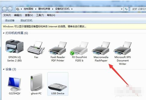 第二步:安装完成后,打开设备和打印机窗口,在这里可以看到多出一个Macromedia FlashPaper打印机,说明FlashPaper软件已正确的安装。