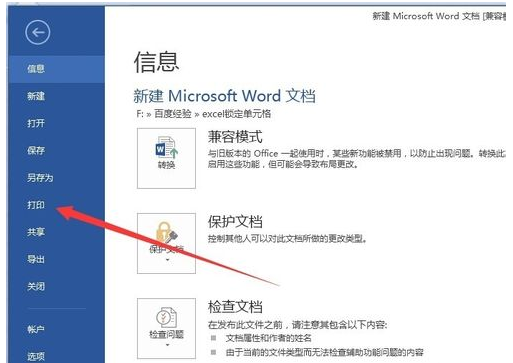 第三步:用word编辑或是打开需转换的word文档,然后点击“文件”菜单,在弹出菜单中选择“打印”菜单项。