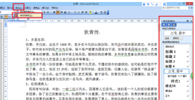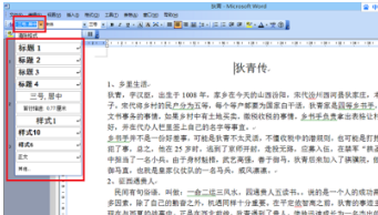 5、最后,把光标放到添加标题的文字前面,点击右侧的样式栏中相应的标题。