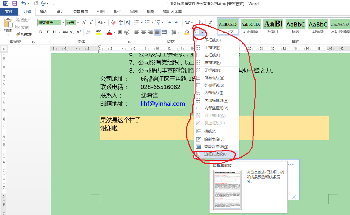 找到了,谢谢哈,果真的你说的那样,一开始找不到那个“底纹”和“段落”在哪里。