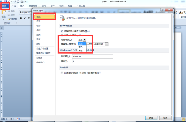 点击“选项”后,打开“word 选项”设置对话框,默认位于常规页面中