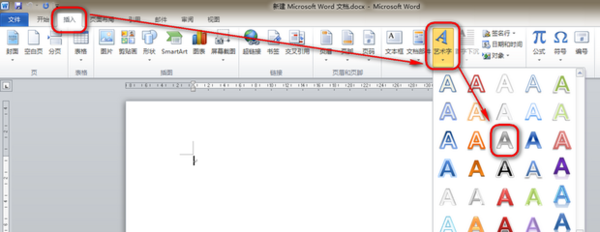 2.在word上方的“插入”中选择“艺术字”,并输入名字;