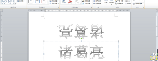 6.也可以利用艺术字的绿色控制点,旋转字体。注意最后要把两个艺术字调成,从两边看都是正方向;