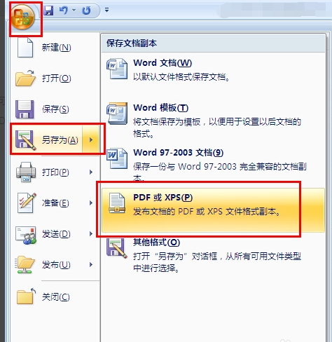 以Word 2007为例,在保存文档时,点击左上角的Office图标,选择“另存为→Word 97-2003文档”,这样文档就会被保存为老版本支持的DOC类型。