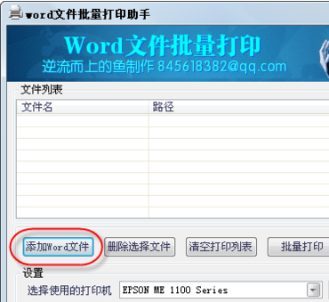 打开“word批量打印助手”软件,点击“添加Word文件”