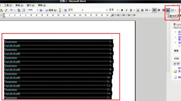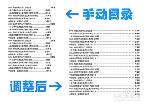 按照你说的,你应该是手动输入的目录而不是自动生成的吧?如果是手输入的目录,你可以试一下这个办法:先不要写“目录”两个字,把目录的内容,也就是你写的“xxxxx……………………1,xxxxxx…………………………2”这些东西全部一起选中,要一起选中,不要一行一行选啊,然后按一下“分散对齐”的按钮。你再看看是不是好了?(如图)